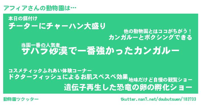| 意味不明あだ名 | 『ペロリンアフィア』『永久保存アフィア』 |