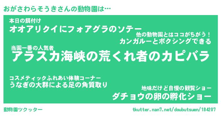 | 料理風あだ名 | 『節約★おがさわらそうきと油揚げの玉子丼』 |