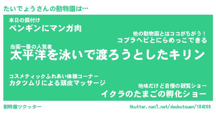 | 2回繰り返すあだ名 | 『たいたい』『たたいい』『うずうず』 |