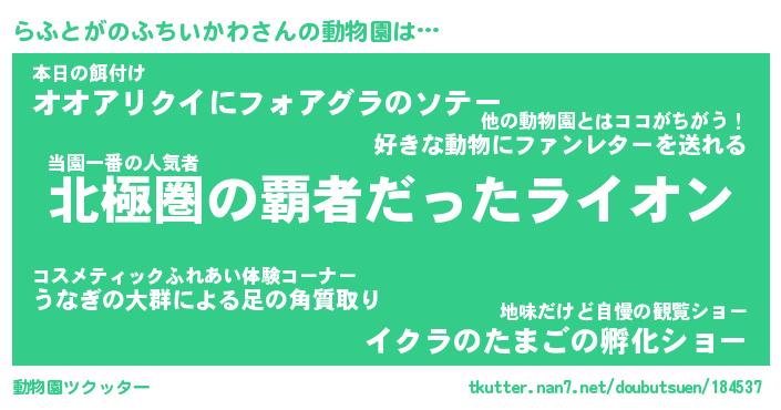 | 胡散臭い通販商品みたいなあだ名 | 『必ず成功するブレスレット…その名も「らふとがのふちいかわ」』 |