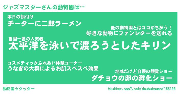 | 2回繰り返すあだ名 | 『ジャジャ』『ジジャャ』『ぶつぶつ』 |