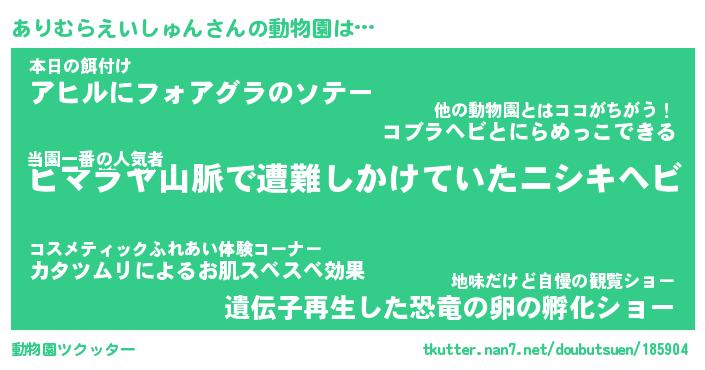 | ツイッター | ありむらえいしゅんさんのツイッターID『namakemono_idle』 |