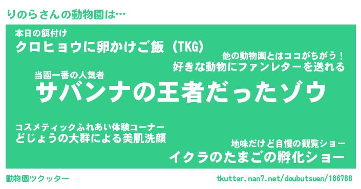 | 2回繰り返すあだ名 | 『りのりの』『りりのの』『うろうろ』 |