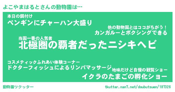 | 2回繰り返すあだ名 | 『よこよこ』『よよここ』『いそいそ』 |