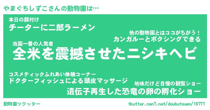 | ツイッター | やまぐちしずこさんのツイッターID『namakemono_star』 |