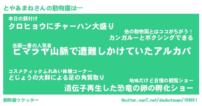 | 2回繰り返すあだ名 | 『とやとや』『ととやや』『ぬぷぬぷ』 |