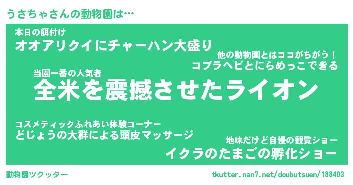 | ツイッター | うさちゃさんのツイッターID『namakemono_man』 |