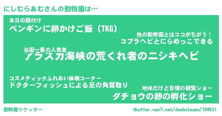 | ヘコむあだ名 | 『にしふぇ~』『つくし』『にし太郎』 |