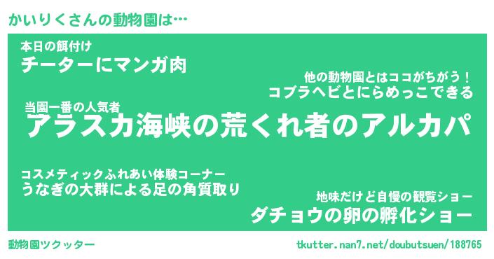 | 2回繰り返すあだ名 | 『かいかい』『かかいい』『ぬらぬら』 |