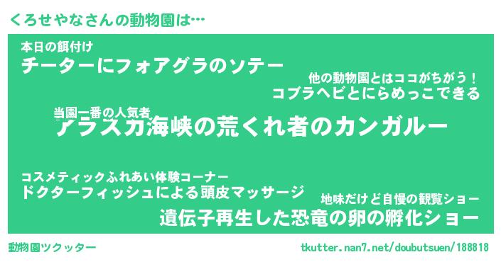 | 2回繰り返すあだ名 | 『くろくろ』『くくろろ』『ぬめぬめ』 |