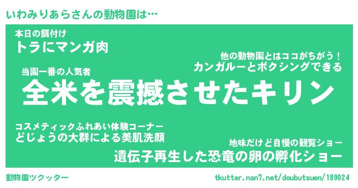 | 2回繰り返すあだ名 | 『いわいわ』『いいわわ』『くたくた』 |