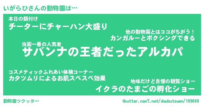 | 2回繰り返すあだ名 | 『いがいが』『いいがが』『うずうず』 |