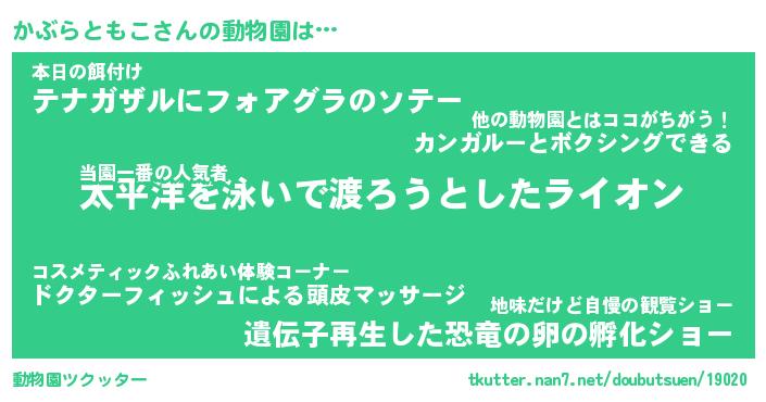 | 2回繰り返すあだ名 | 『かぶかぶ』『かかぶぶ』『にたにた』 |