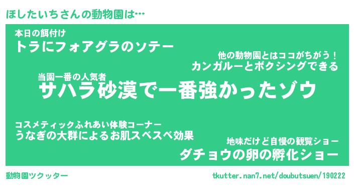 | 2回繰り返すあだ名 | 『ほしほし』『ほほしし』『ぷりぷり』 |