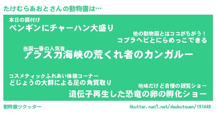 | 2回繰り返すあだ名 | 『たけたけ』『たたけけ』『いらいら』 |