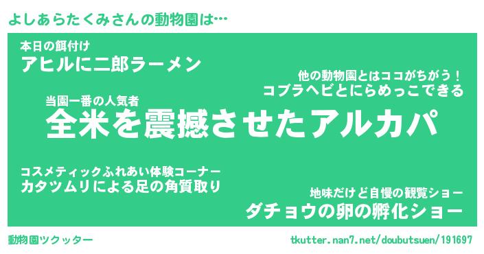 | 胡散臭い通販商品みたいなあだ名 | 『億万長者になれる霊験あらたかなお札…その名も「よしあらたくみ」』 |