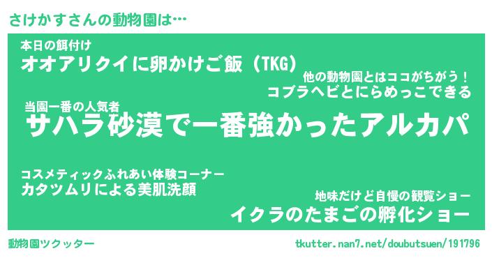 | 2回繰り返すあだ名 | 『さけさけ』『ささけけ』『うねうね』 |