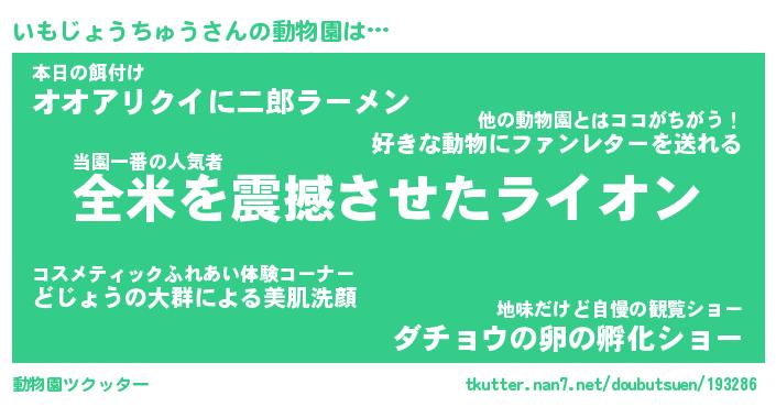 | 2回繰り返すあだ名 | 『いもいも』『いいもも』『かたかた』 |