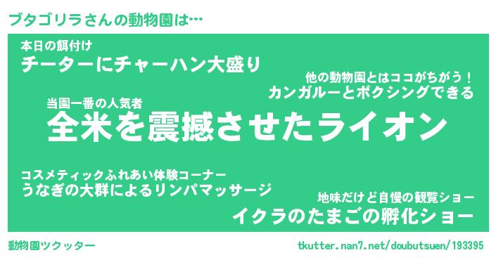 | 2回繰り返すあだ名 | 『ブタブタ』『ブブタタ』『うねうね』 |
