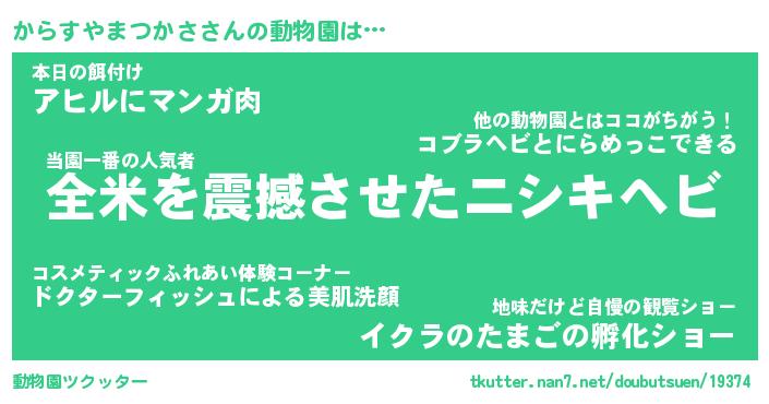| ツイッター | からすやまつかささんのツイッターID『namakemono_idle』 |