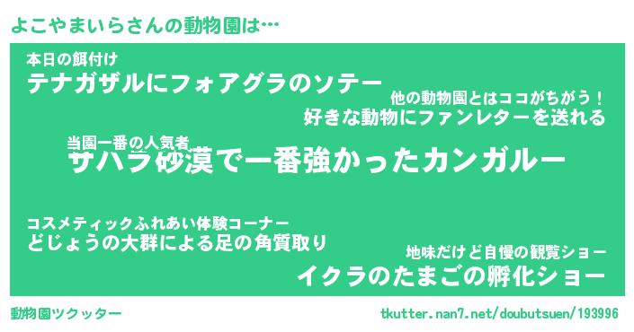 | 2回繰り返すあだ名 | 『よこよこ』『よよここ』『かさかさ』 |