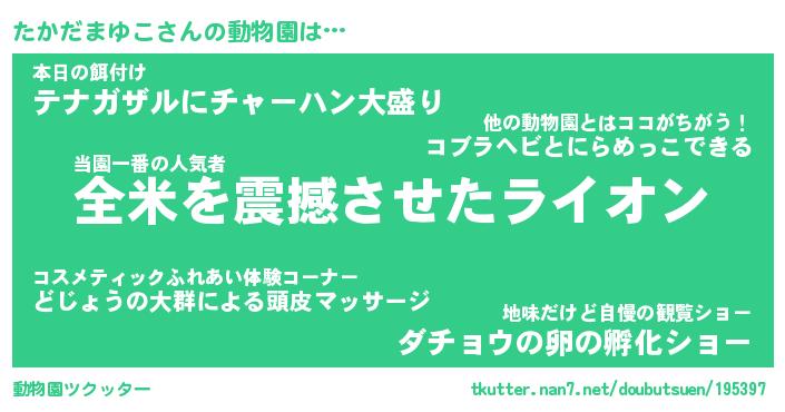| 肩書あだ名 | 『たかだまゆこCEO』『たかだまゆこ班長』 |