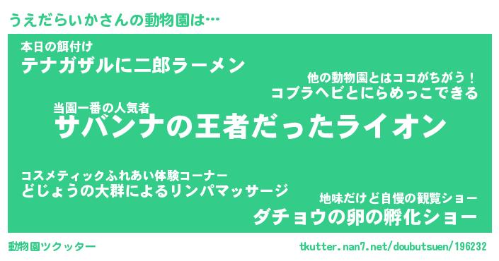 | 2回繰り返すあだ名 | 『うえうえ』『ううええ』『ぬれぬれ』 |