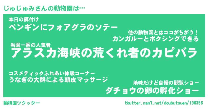 | 2回繰り返すあだ名 | 『じゅじゅ』『じじゅゅ』『おたおた』 |