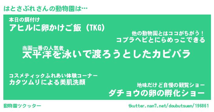 | 2回繰り返すあだ名 | 『はとはと』『ははとと』『こつこつ』 |