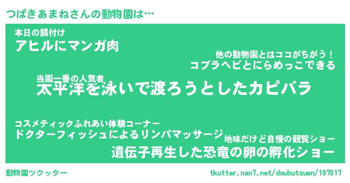 | 2回繰り返すあだ名 | 『つばつば』『つつばば』『ぬれぬれ』 |