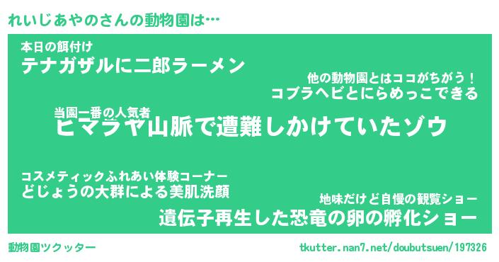 | ツイッター | れいじあやのさんのツイッターID『dendenmushi_idle』 |