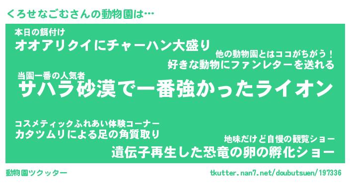 | 2回繰り返すあだ名 | 『くろくろ』『くくろろ』『ぬるぬる』 |