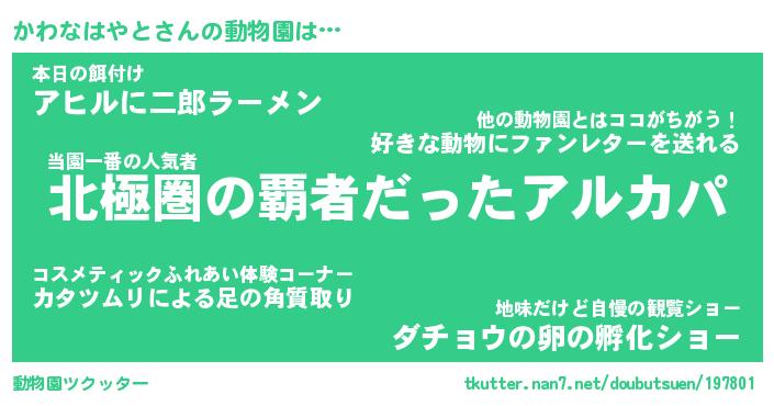 | 2回繰り返すあだ名 | 『かわかわ』『かかわわ』『ぐらぐら』 |