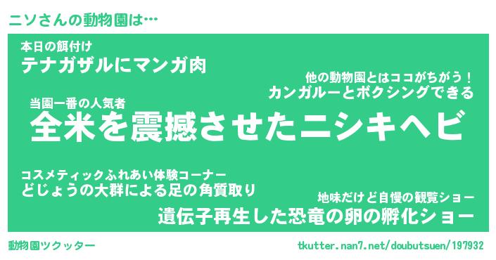 | 2回繰り返すあだ名 | 『ニソニソ』『ニニソソ』『ねばねば』 |