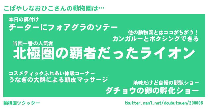 | 2回繰り返すあだ名 | 『こばこば』『ここばば』『うずうず』 |