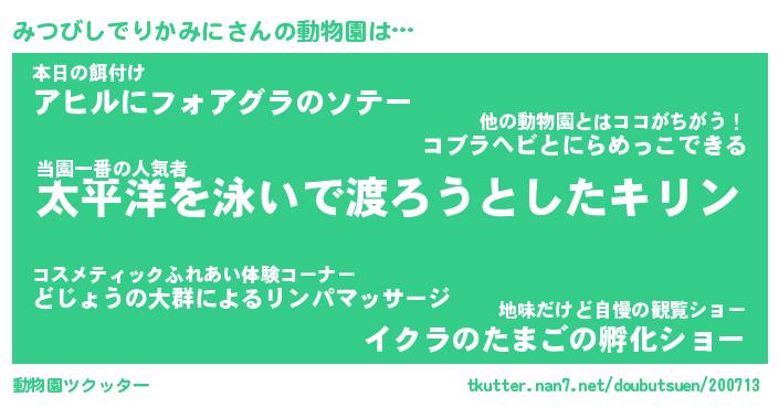 | 欧米人風あだ名 | 『マイケルみつびしでりかみに』 |