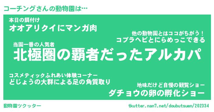 | 2回繰り返すあだ名 | 『コーコー』『ココーー』『がさがさ』 |