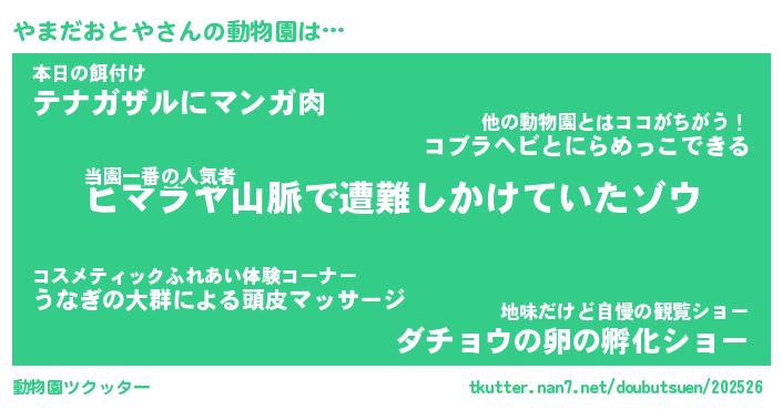 | 2回繰り返すあだ名 | 『やまやま』『ややまま』『くにくに』 |