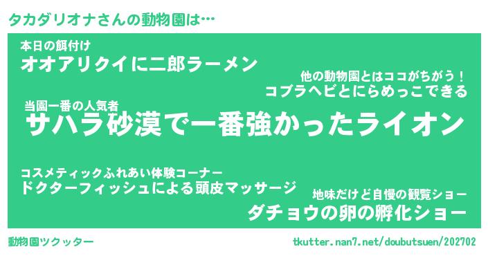 | 2回繰り返すあだ名 | 『タカタカ』『タタカカ』『くたくた』 |