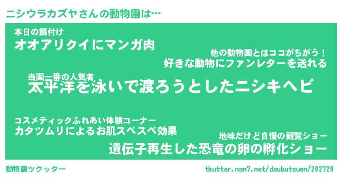 | 2回繰り返すあだ名 | 『ニシニシ』『ニニシシ』『げこげこ』 |