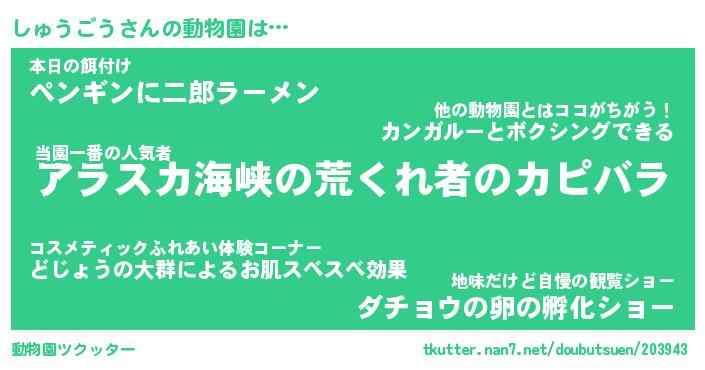 | 2回繰り返すあだ名 | 『しゅしゅ』『ししゅゅ』『けらけら』 |
