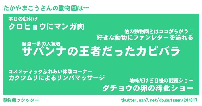| 2回繰り返すあだ名 | 『たかたか』『たたかか』『なあなあ』 |