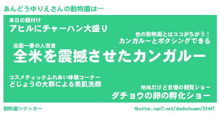| 2回繰り返すあだ名 | 『あんあん』『ああんん』『うろうろ』 |