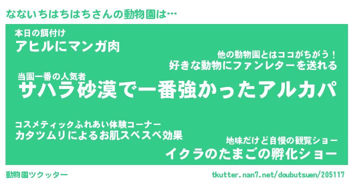 | 2回繰り返すあだ名 | 『なななな』『なななな』『ぎーぎー』 |