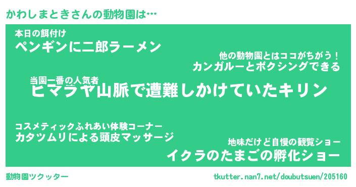 | 肩書あだ名 | 『かわしまとき店長』『かわしまとき班長』 |