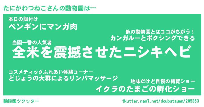 | 2回繰り返すあだ名 | 『たにたに』『たたにに』『にたにた』 |