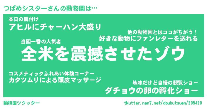 | 2回繰り返すあだ名 | 『つばつば』『つつばば』『おろおろ』 |