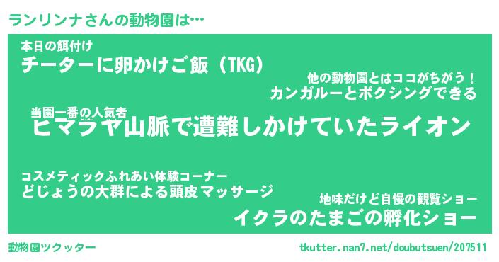 | 2回繰り返すあだ名 | 『ランラン』『ラランン』『げこげこ』 |