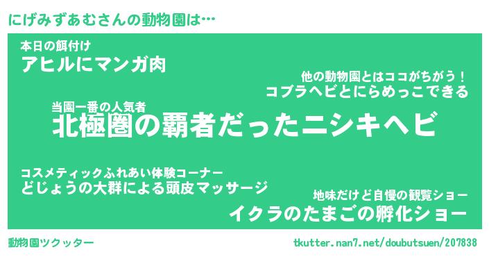 | ヘコむあだ名 | 『にげふぇ~』『牛乳』『にげお』 |