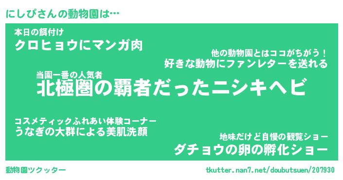 | 2回繰り返すあだ名 | 『にしにし』『ににしし』『ねちねち』 |
